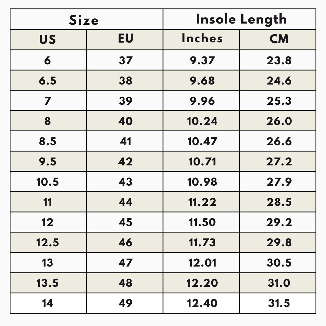 To ensure the most comfortable fit, please refer to our detailed size chart below.