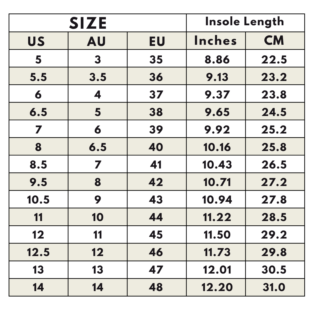 To ensure the most comfortable fit, please refer to our detailed size chart below.