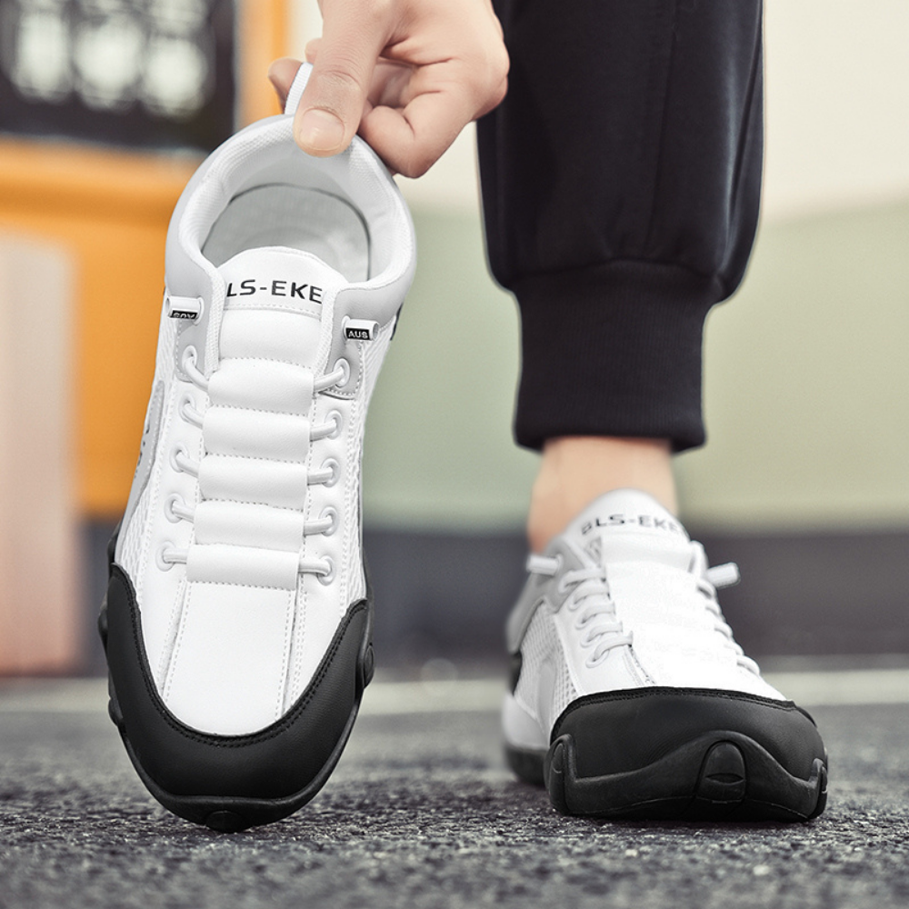 Breathable Mesh Upper + Leather Patch Accents – Ventilated comfort meets durable, elevated style.